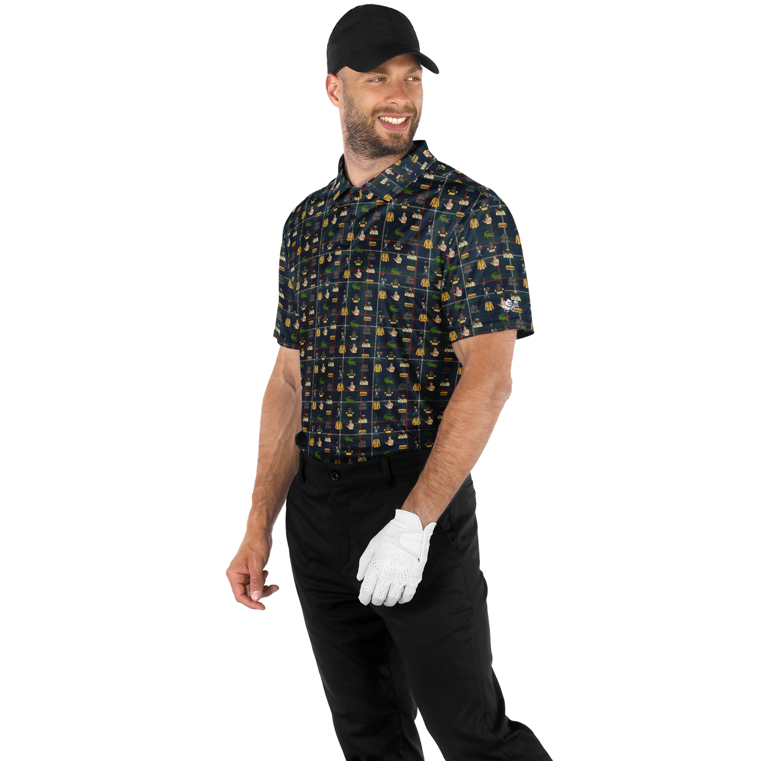 Elevate your golf game with our Men's "Happy Gilmore" Golf Polo, designed for comfort, performance, and environmental consciousness. Crafted from 100% Recycled Polyester, this polo shirt offers a super soft, stretchy fabric that promotes unrestricted movement. Sweat-wicking and breathable materials ensure a dry, cool wear, while UPF 50+ protection safeguards against harmful sun rays.